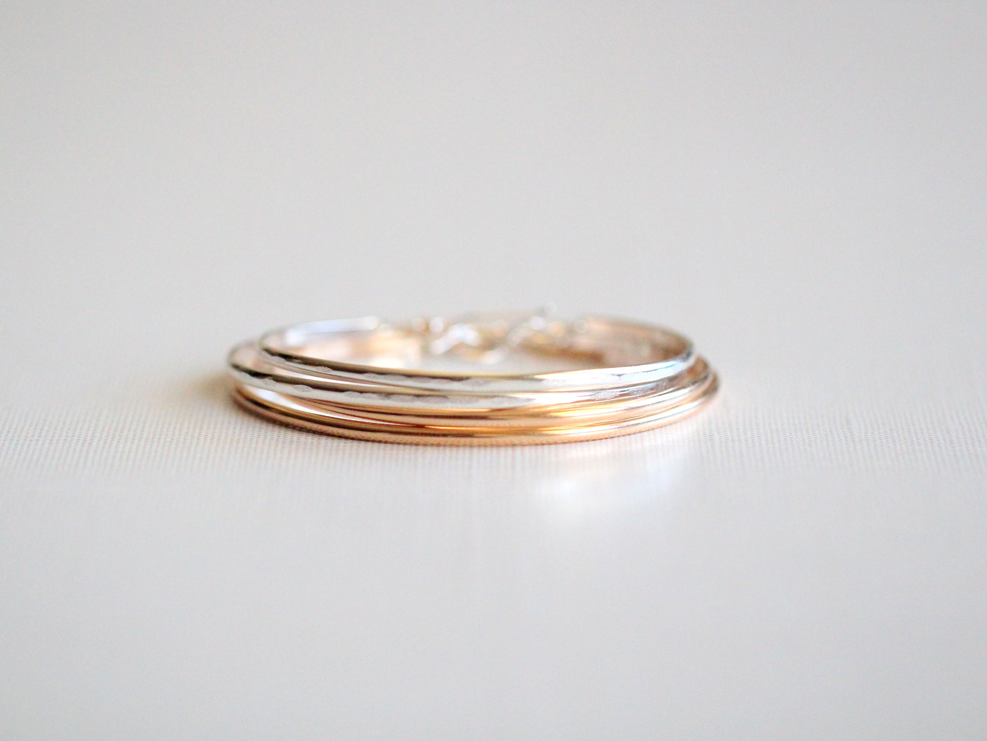 Our Everyday Stacking Bracelets are a perfect addition to your 'grab and go' jewelry stash. Lightly hammered and shaped from half round quality metals, this bracelet fits lightly and comfortably but is very sturdy.