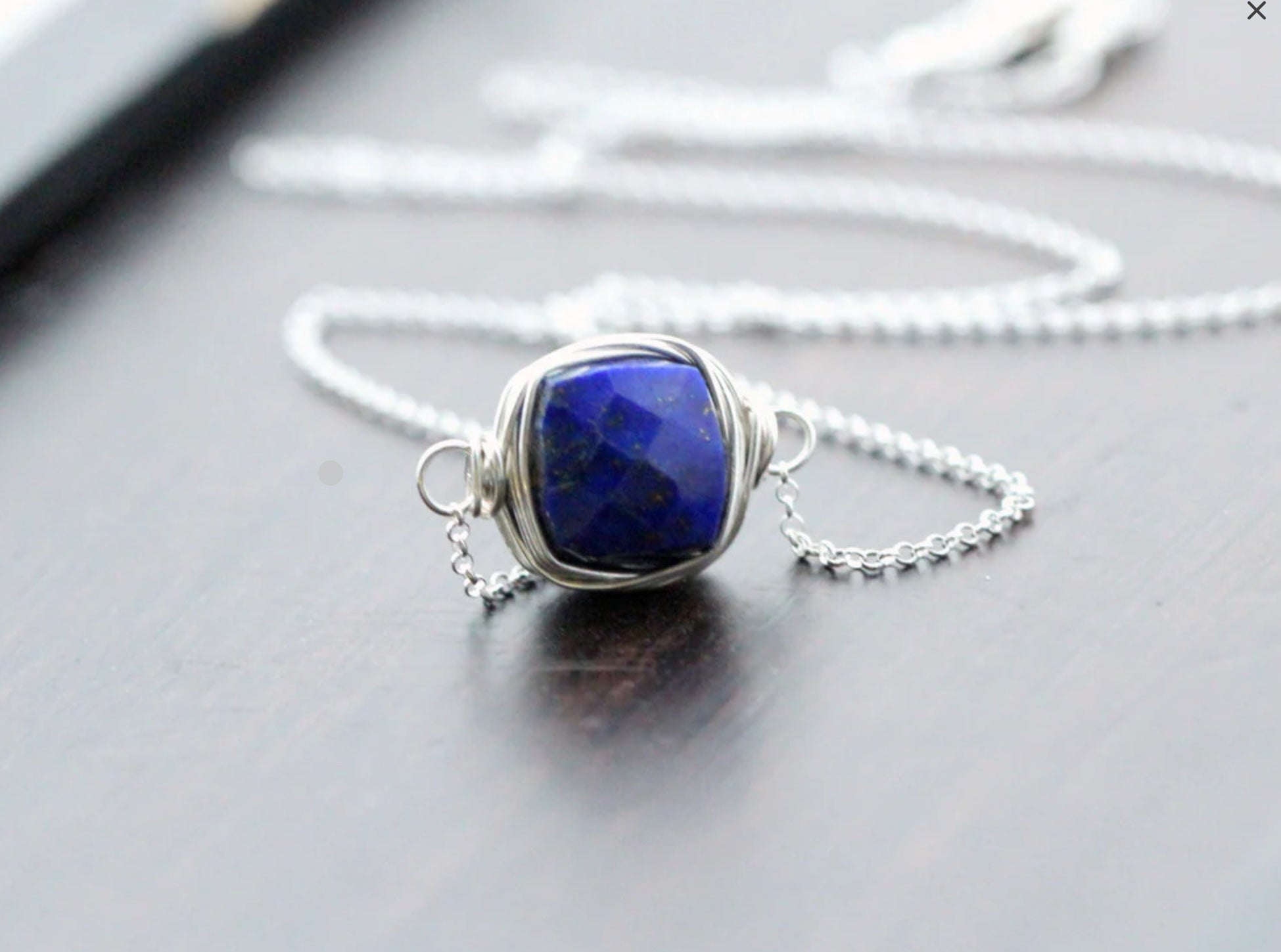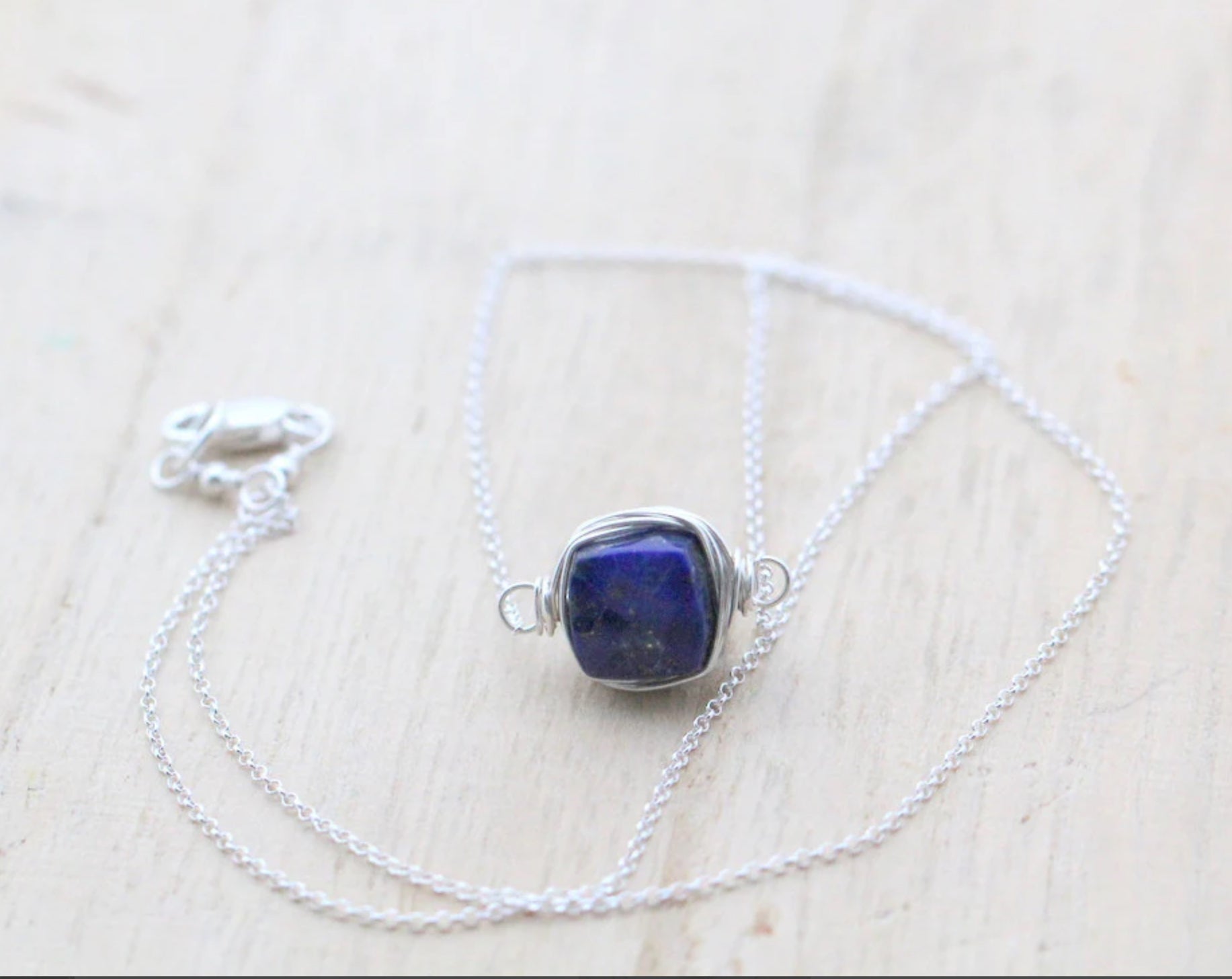 This beautiful necklace features a gorgeous faceted Lapis Lazuli cube securely wrapped in sterling silver wire in my signature bezel style fashion. Sitting right near the collar bone, it's a simple yet gorgeous piece that will be easy to wear everyday, and mix with other pieces.